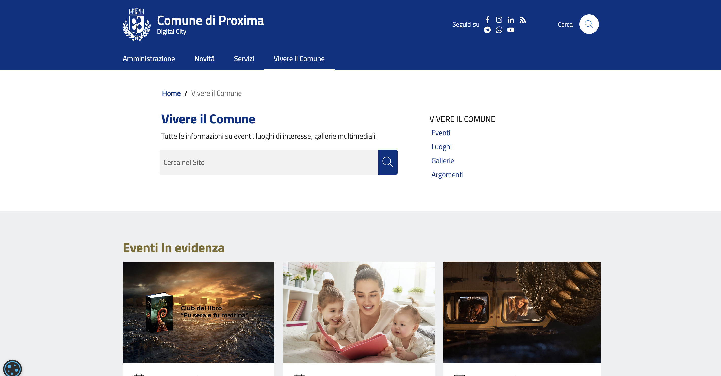 Come suggerisce il nome della sezione, all'interno di questa pagina troveremo tutte le informazioni per vivere e accedere attivamente alle attività del Comune, ovvero gli Eventi, i Luoghi di Interesse, le Gallerie Fotografiche e gli Argomenti tramite i quali potrete accedere velocemente ai contenuti raccolti per macrocategorie.